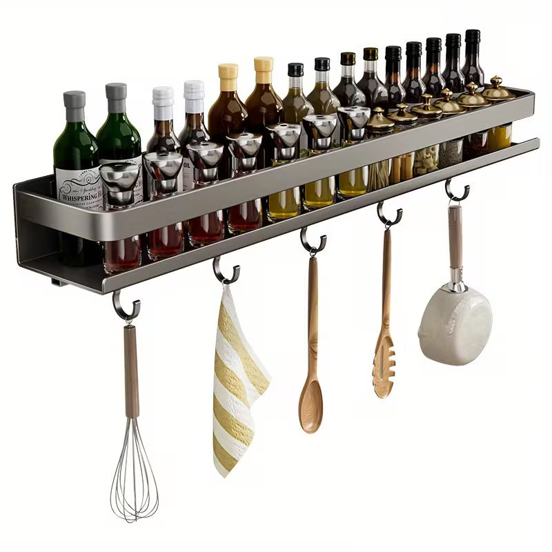 Porte-épices mural sans perçage — fixation adhésive haute résistance incluse. Capacité 20 pots, compatible vapeur et graisses.